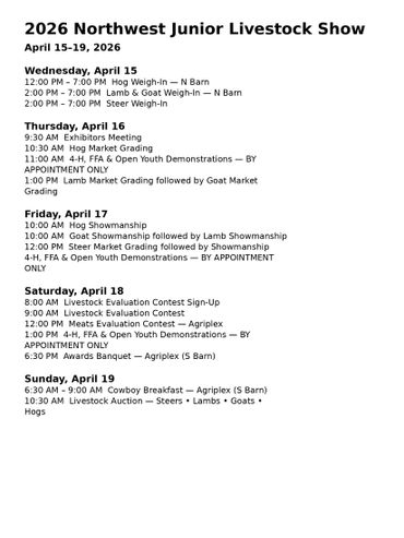 Livestock Evaluation 04/17/26 9:00am (Check in at 8:00am)